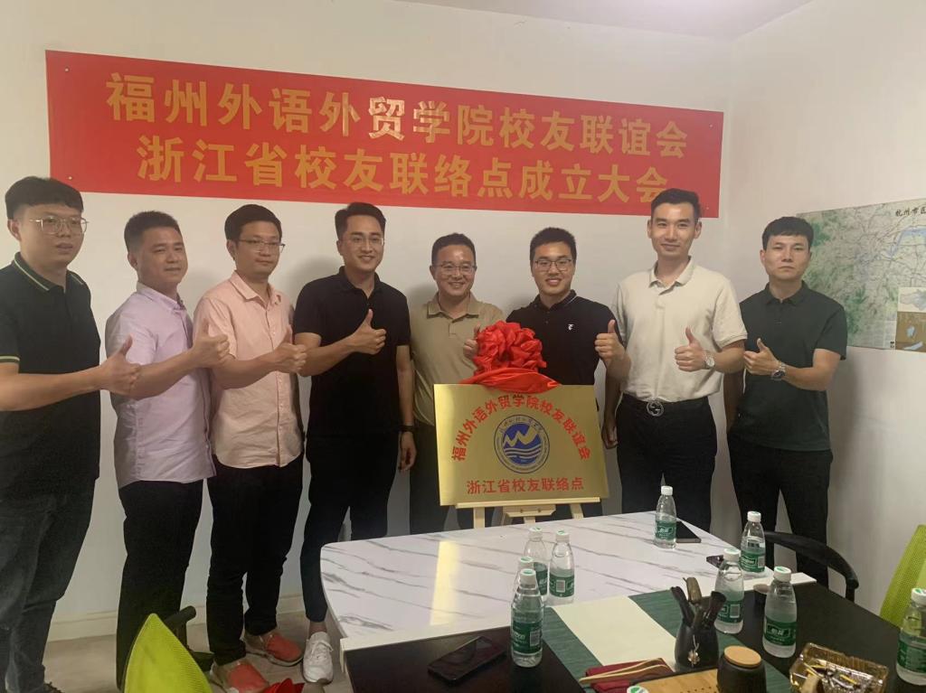 吴培煌向联络点负责人郭和平和林立航校友颁发了聘书,并共同为联络点揭牌。郭和平作为浙江校友代表发言,他代表浙江校友感谢学校的关心,并表示将做好联络点的建设工作,让联络点成为福外浙江校友的一个“家”。