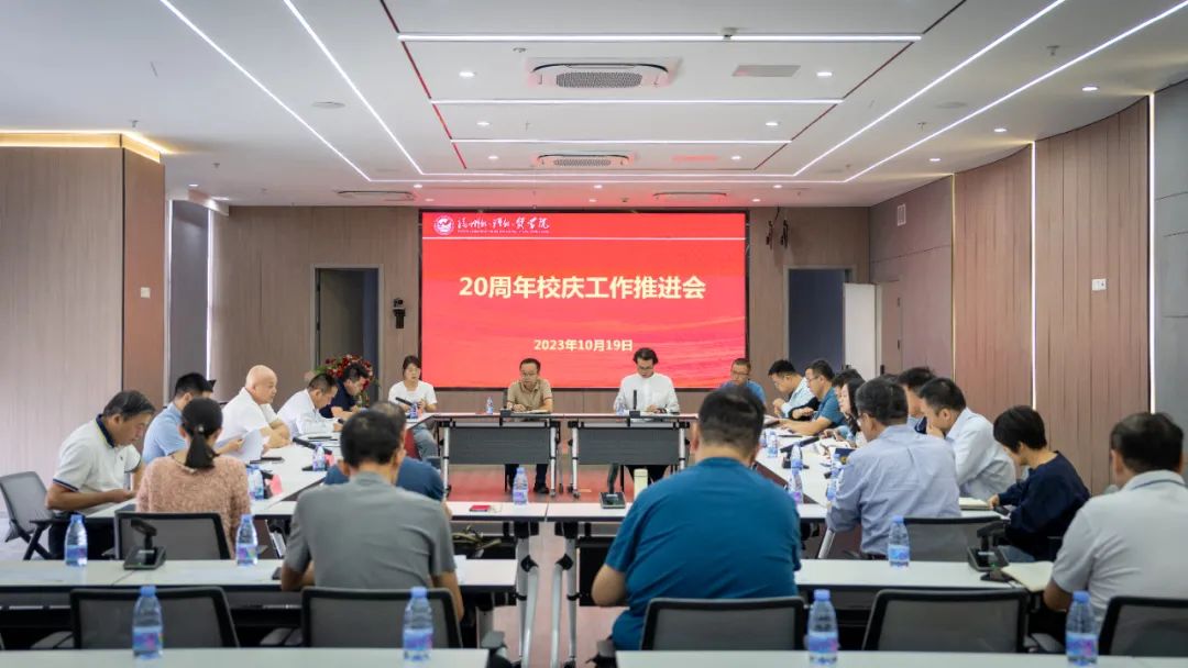 10月19日,我校20周年校庆工作推进会在校部办公大楼第三会议室召开。会议由校长许明主持,全体校领导出席会议,各中心主任以及各二级学院院长、书记参加会议。