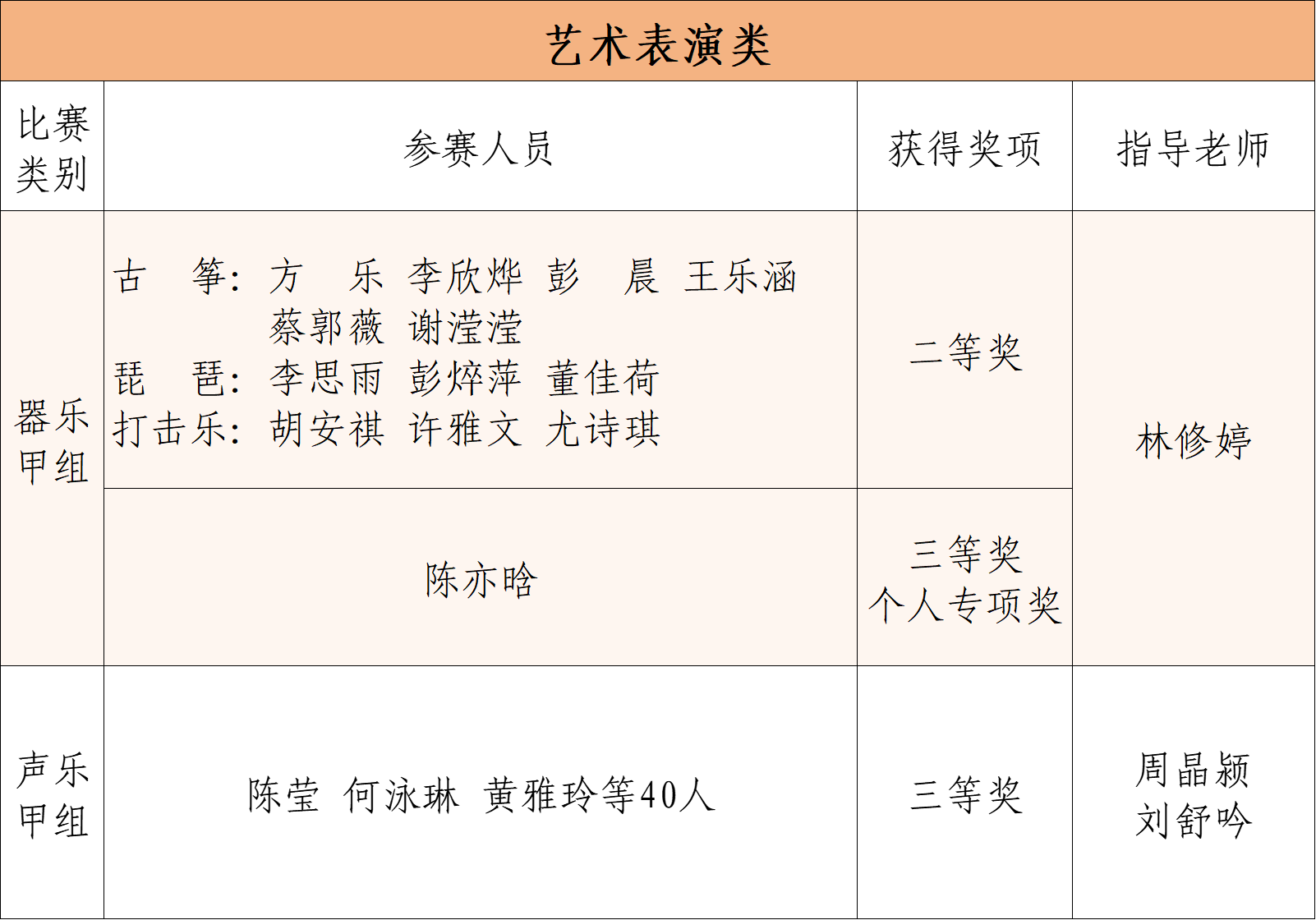 近日,福建省教育厅公布了第七届大学生艺术节展演活动获奖名单,我校获得了二等奖5项,三等奖5项,个人专项奖1项。