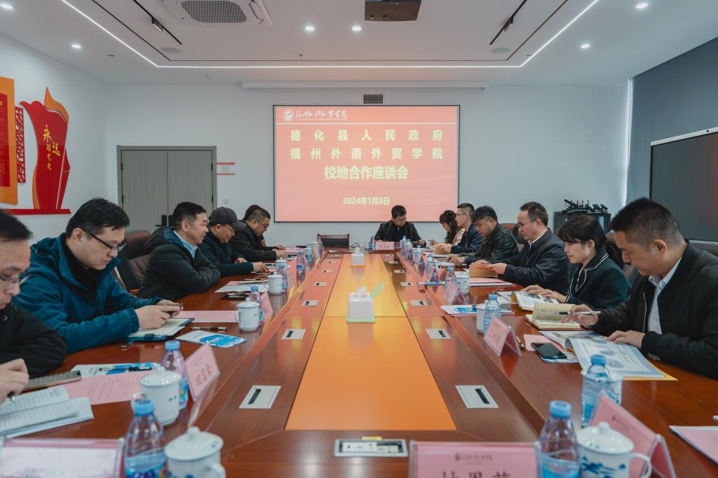 熊建军对学校的发展表示充分的认定和肯定,并从“千年古县、特色瓷都、全国文明城市、全域旅游示范区、营商环境百强县”五个方面详细介绍德化县的基本情况。他希望,校地双方突出重点、定期交流,在产业学院建设、外语人才培养与服务、外语宣传报道、学生社会实践等方面进行深入合作,将校地合作落实落细。