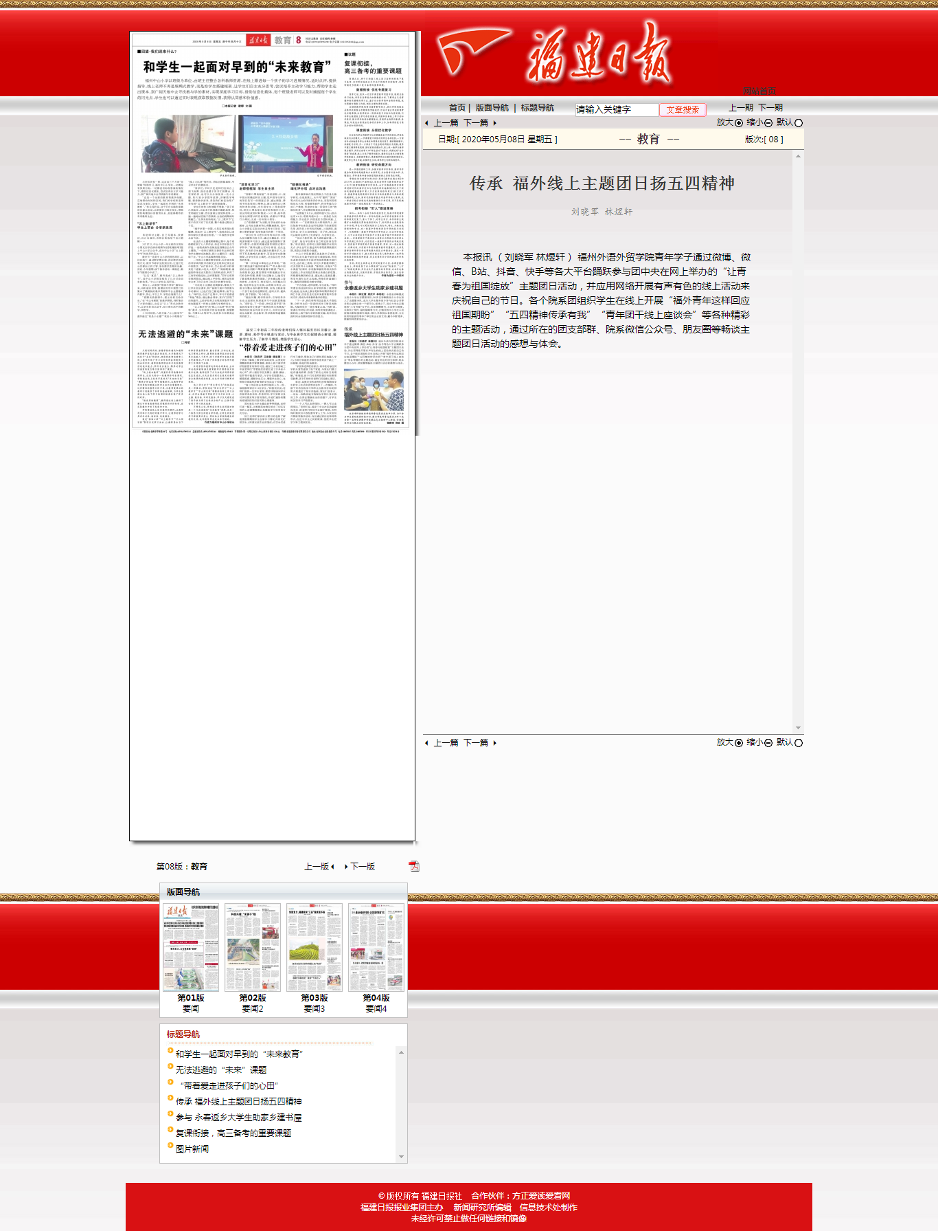 福建日报报道:传承 福外线上主题团日扬五四精神