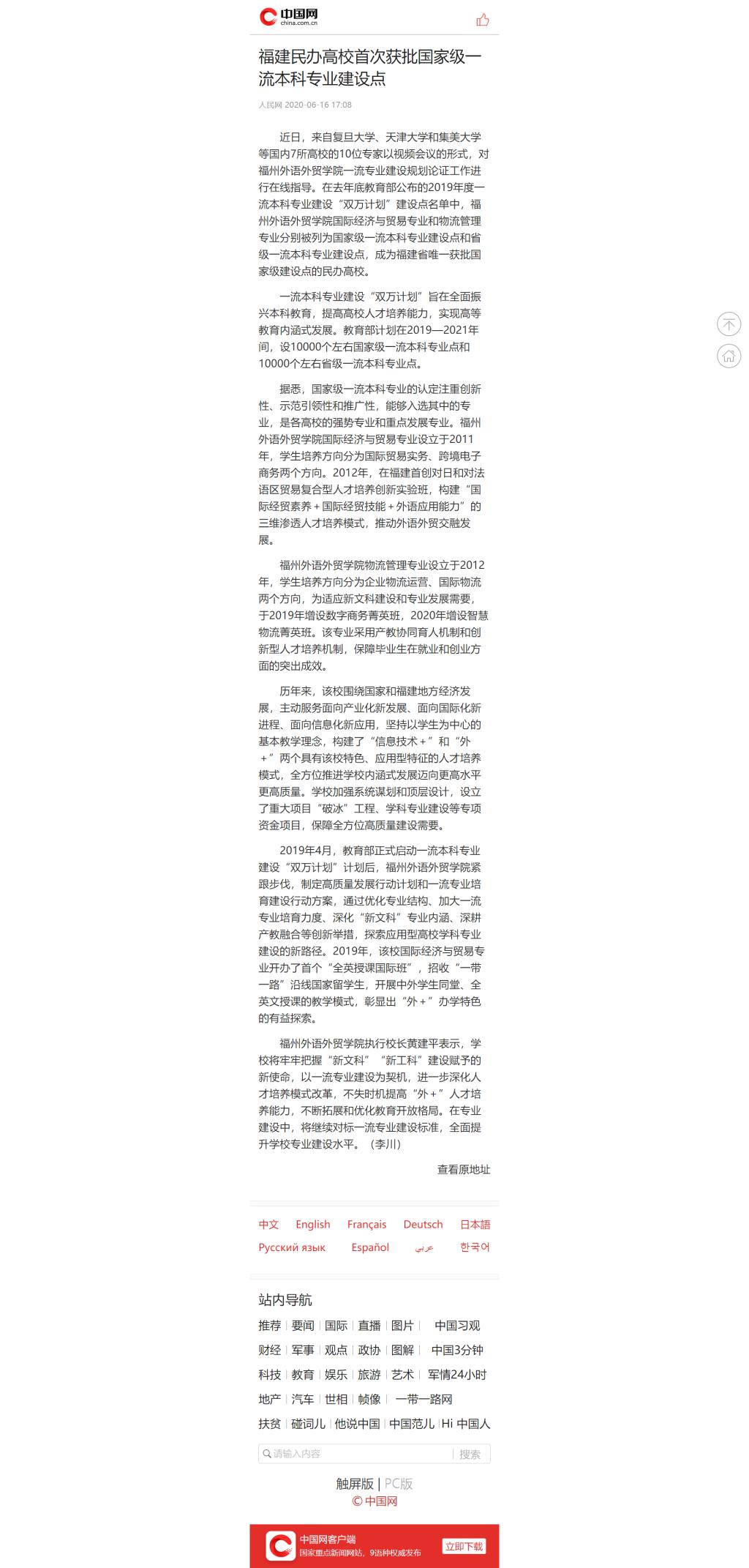 中国网客户端报道:福建民办高校首次获批国家级一流本科专业建设点