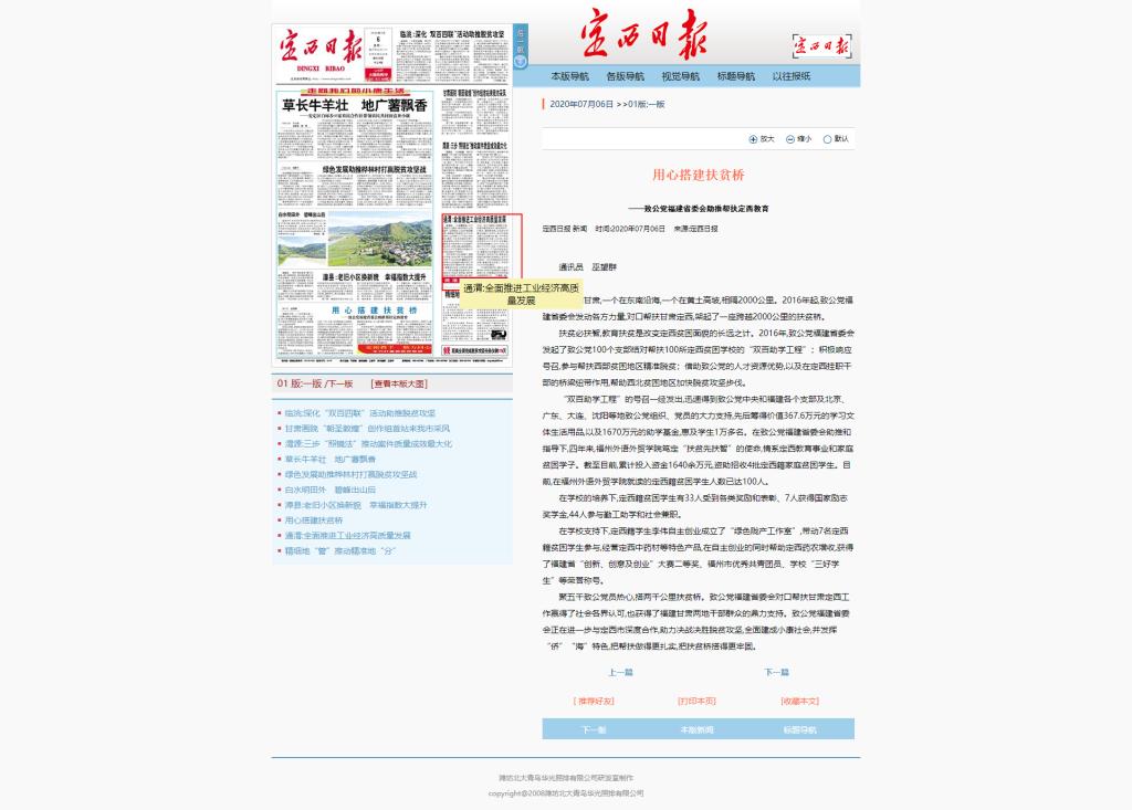 定西日报报道:用心搭建千里桥——致公党福建省委会助推帮扶定西教育