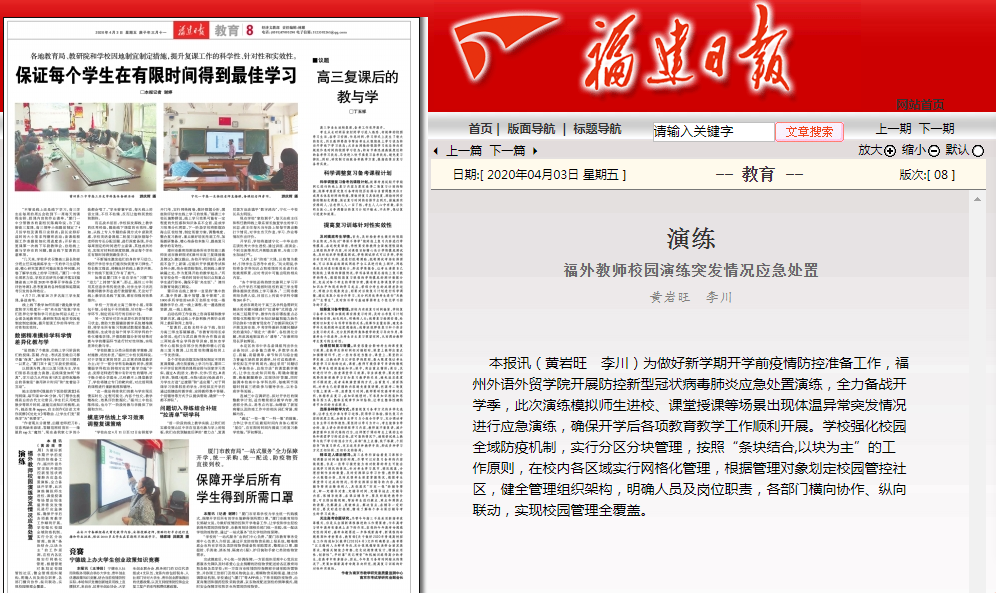 福建日报报道:演练·福外教师校园演练突发情况应急处置