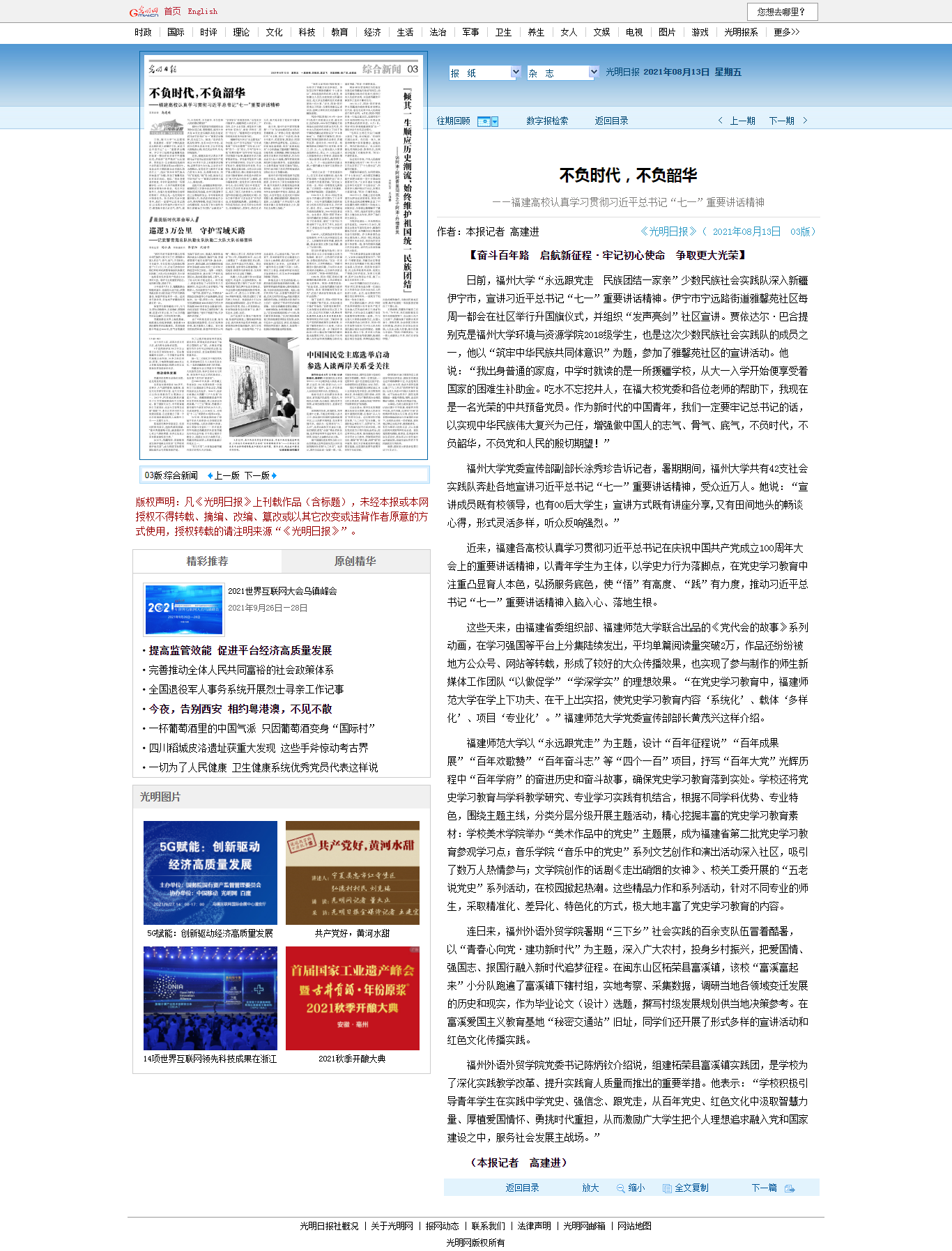 光明日报报道:不负时代,不负韶华——福建高校认真学习贯彻习近平总书记“七一”重要讲话精神