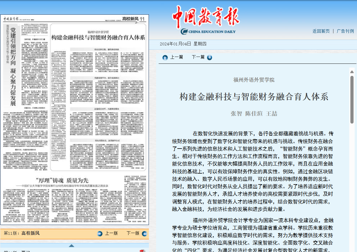 中国教育报:构建金融科技与智能财务融合育人体系