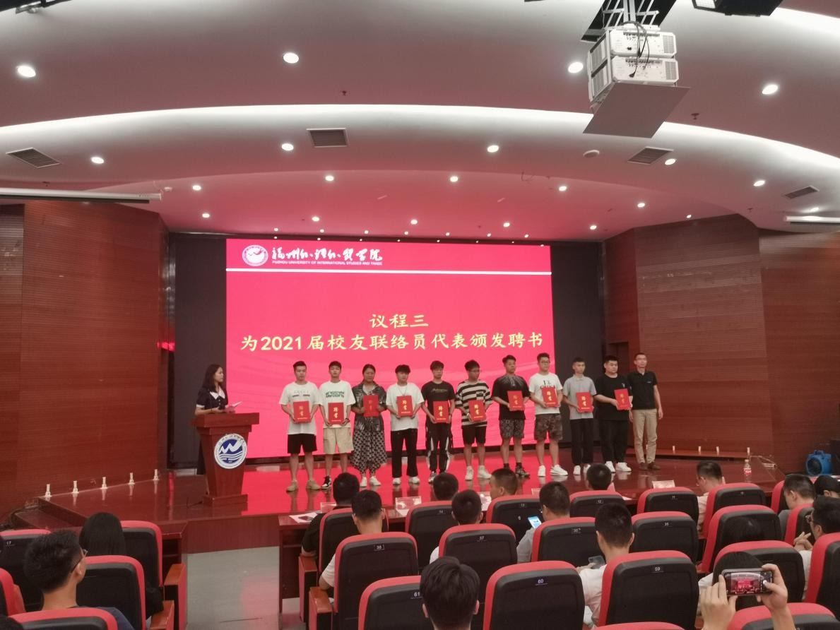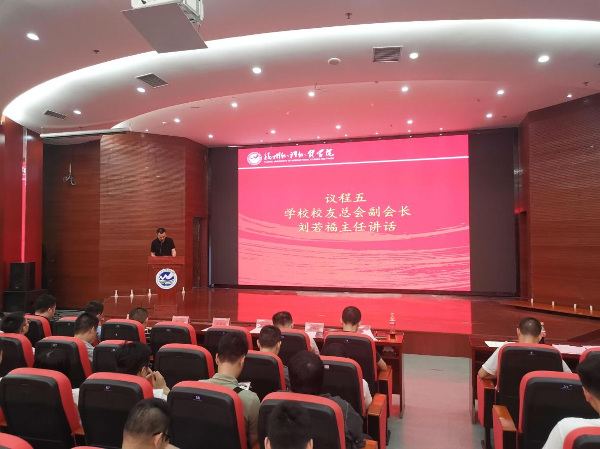 刘若福代表学校校友总会讲话,他向校友联络员圆满完成学业和主动作为表示衷心的祝贺和感谢,并从三个方面谈了对校友联络员工作的期望,一是当好母校精神的传播者;二是当好校友感情的联络者;三是当好协同发展的促进者。他指出,校友联络员是一个光荣的称号,更是一份责任。希望各位校友联络员肩负起母校的重托和期望,在发展好自己事业的同时凝聚更多的校友,在今后的学习工作中取得更大的进步,为母校的发展继续贡献力量。