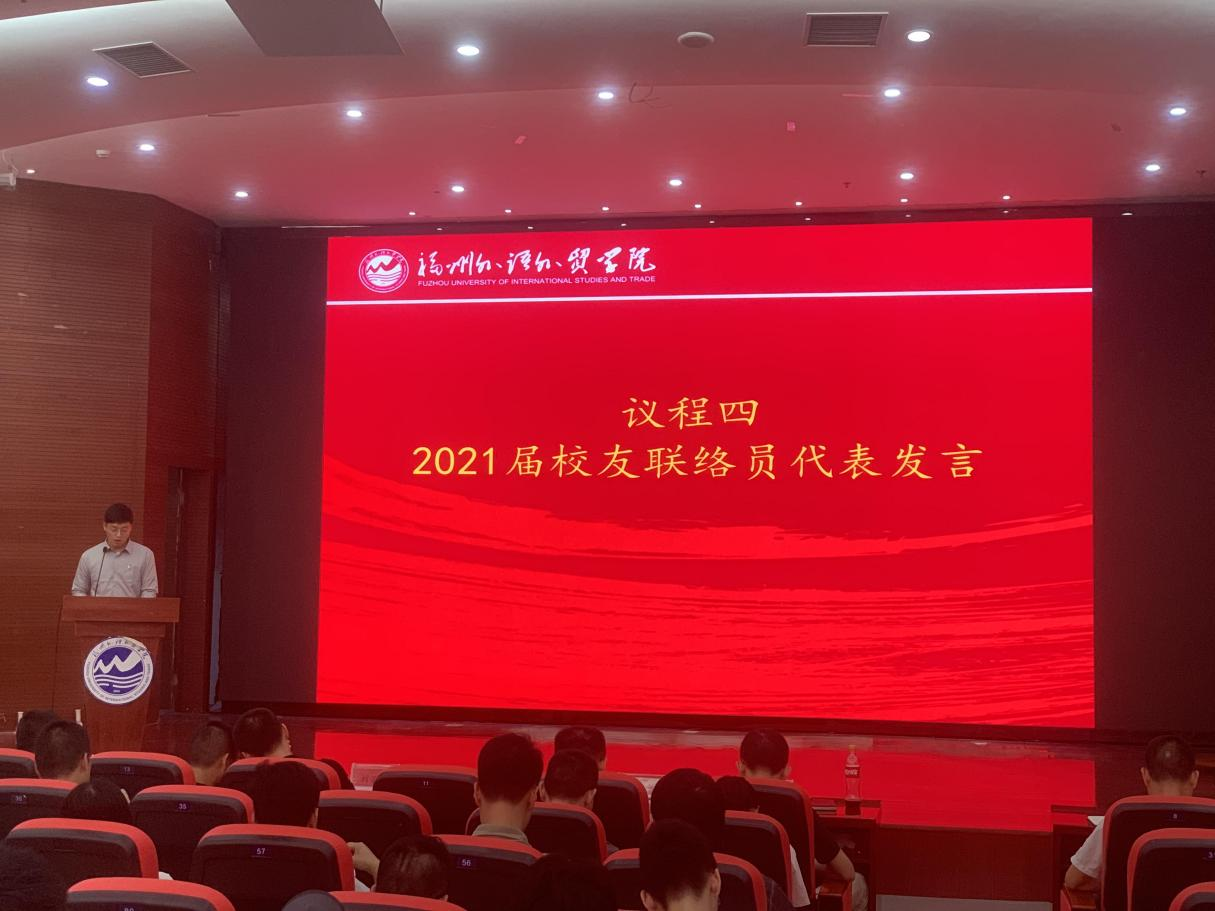 经管学院毕业生许瑞代表2021届校友联络员发言,他充分表达了对母校的感恩和眷恋之情,并表示将不负母校的信任,积极为校友的联络工作奉献力量。他号召各联络员关注、支持母校的发展,恪守校友联络员职责,不断推动母校和校友的共同发展进步。