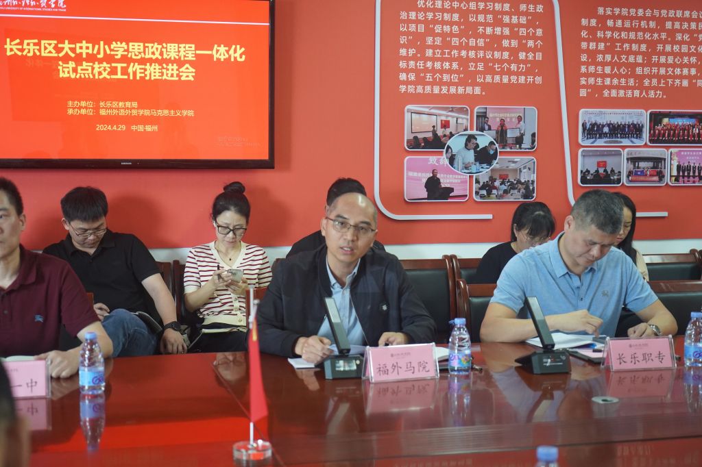 我校马克思主义学院副院长陈金平介绍了我校开展的特色活动以及取得的相关成绩。他表示,我校已在大中小学思政课一体化建设中迈出初步的探索步伐,未来还将围绕教学提升、科研联合、实践研修、资源共享等方面继续发力,与各大中小学试点校打破学段壁垒,共同推进长乐区思政课一体化的建设。