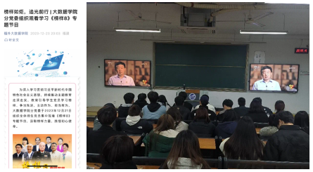 二是倡导榜样学习,传承先进精神。近年来支部以学习陈炜、谷文昌等同志的先进事迹和崇高精神为主题组织了近10次学习活动,组织开展红色观影、观看“开学思政第一课”等活动5次,以坚定信念,开启榜样学习的新道路;组织观看“江泽民同志追悼大会”实况直播,让党员们继承先烈的遗志,坚持奋斗,不忘初心,继续向前;组织观看《榜样7》节目、《时代楷模发布厅》节目等活动,以带领党员学习先进事迹,感悟楷模的时代力量,不断提升思想境界和道德修养;还通过学院公众号发布专题系列推文,激励党员传承榜样精神,产生正能量,将初心融入灵魂,扛起使命。
